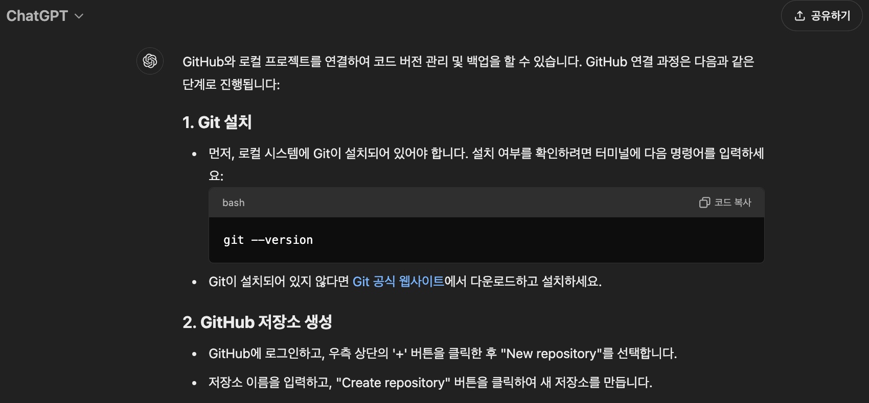 GitHub 저장소 생성
